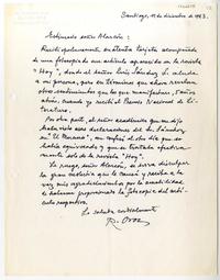 Santiago, Chile [a] Justo Alarcón Reyes Carta, 1983 diciembre 11, [manuscrito] Rodolfo Oroz Scheibe.