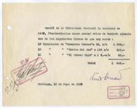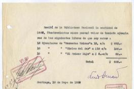 Santiago, Chile [de] Biblioteca Nacional de Chile Recibo, 1939 mayo 10, [manuscrito] Luis Durand.