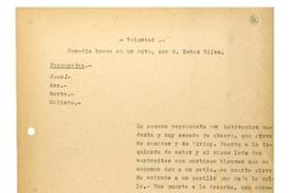 Voluntad [manuscrito] / Nathanael Yáñez Silva. 13 hojas; 27 x 19,3 cm. .