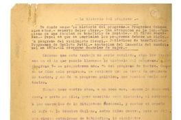 La historia del programa [manuscrito] / Nathanael Yáñez Silva. 29 hojas ; 27,3 x 19,5 cm. .