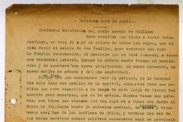 Palabras para la radio [manuscrito] Nathanael Yáñez Silva.