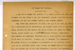 La magia del teatro [manuscrito] / Nathanael Yáñez Silva. 3 hojas ; 27,6 x 19,7 cm. .