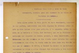 [Vida y arte de Sara Bernhardt] [manuscrito] Nathanael Yáñez Silva.
