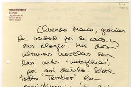 Madrid, España [a] Mario Boero Carta, Cerca de 1996, [manuscrito] / Rosa Montero. 1 hoja ; 15,6 x 21,5 cm. .