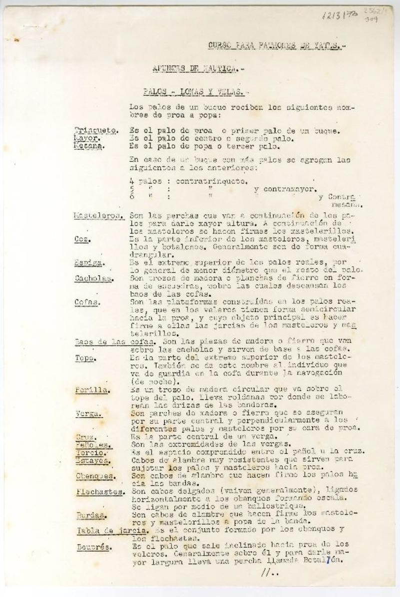 Apuntes de naútica [manuscrito] Transcrito por Salvador Reyes.
