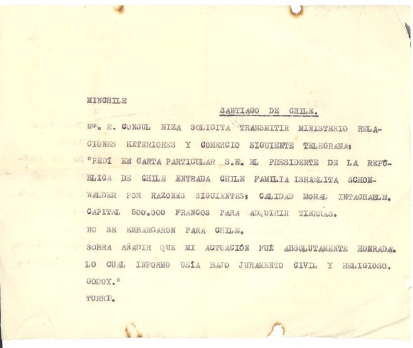 [Carta], [c.1940], [Santiago de Chile] [a] Ministerio de Relaciones Exteriores Y Comercio [Chile] [manuscrito] Enrique Turri.