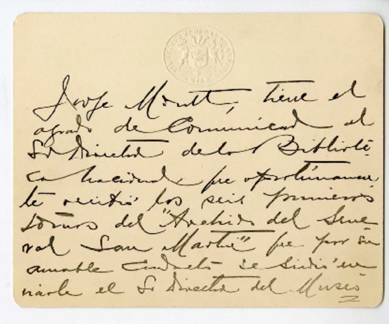 [Carta] [1910] Valparaíso, Chile [a] Biblioteca Nacional de Chile [manuscrito] Jorge Montt Álvarez.
