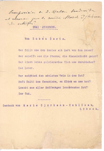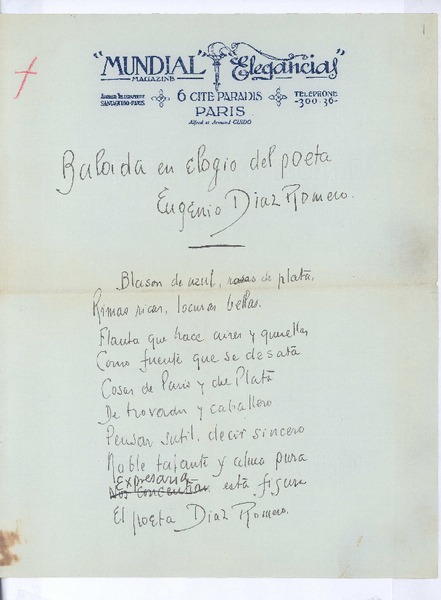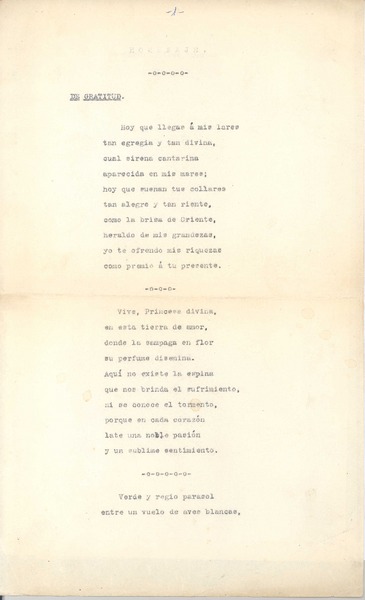 [Gloria a ti sobre el astro...] [manuscrito] Rubén Darío.