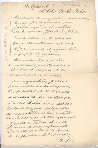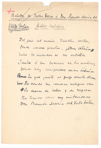 A la nena de Lambesti [manuscrito] Rubén Darío.