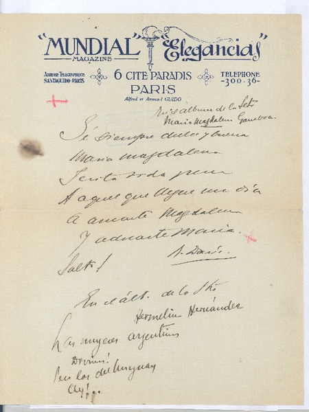 A Victoria Mayorga Marín [manuscrito] Rubén Darío.