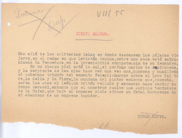 Obsequio simbólico [manuscrito] Rubén Darío.