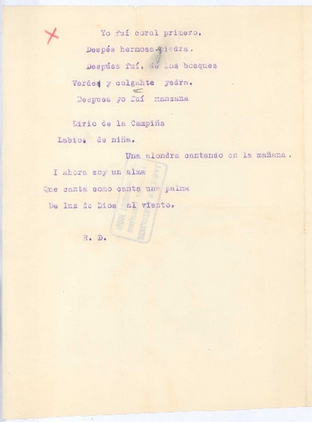 [Yo fuí coral primero....] [manuscrito] Rubén Darío.