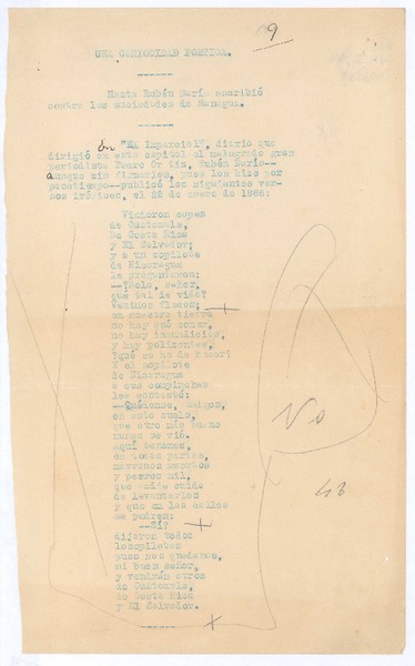 Una curiosidad poética [manuscrito] Rubén Darío; transcripción.
