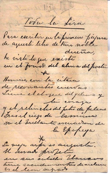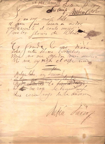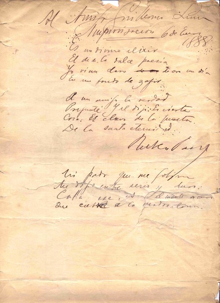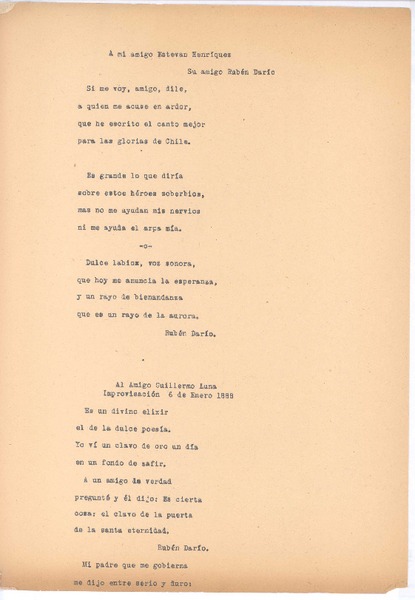 A mi amigo [manuscrito] Rubén Darío; transcripción de Raúl Silva Castro.