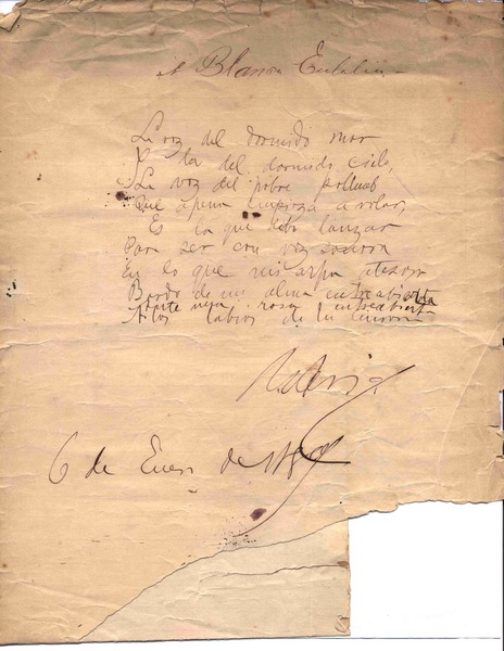 A Blanca Eulalia [manuscrito] Rubén Darío.