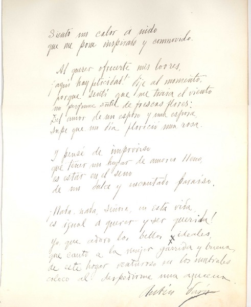 "Siento un calor a nido..." [manuscrito] Ruben Darío.