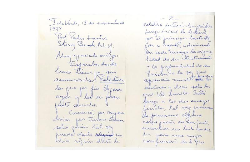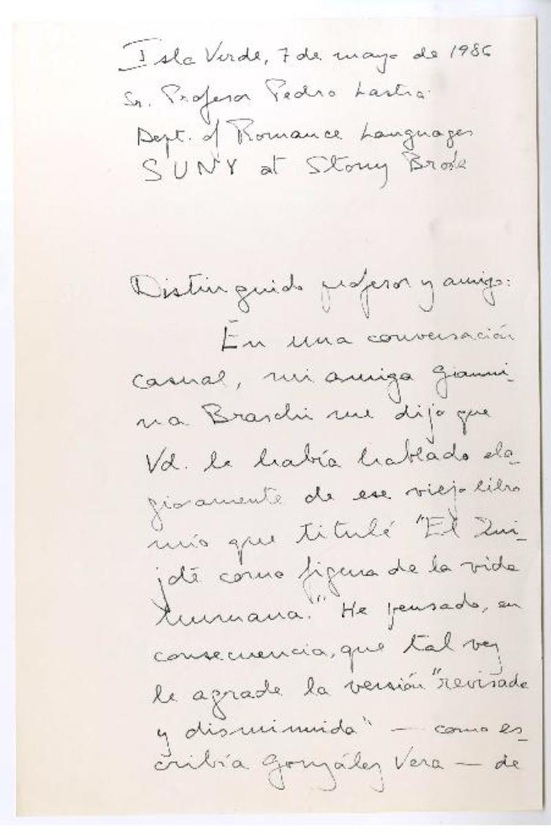 Isla Verde, Puerto Rico [a] Pedro Lastra Carta, 1987, [manuscrito] José Echeverría Yáñez.