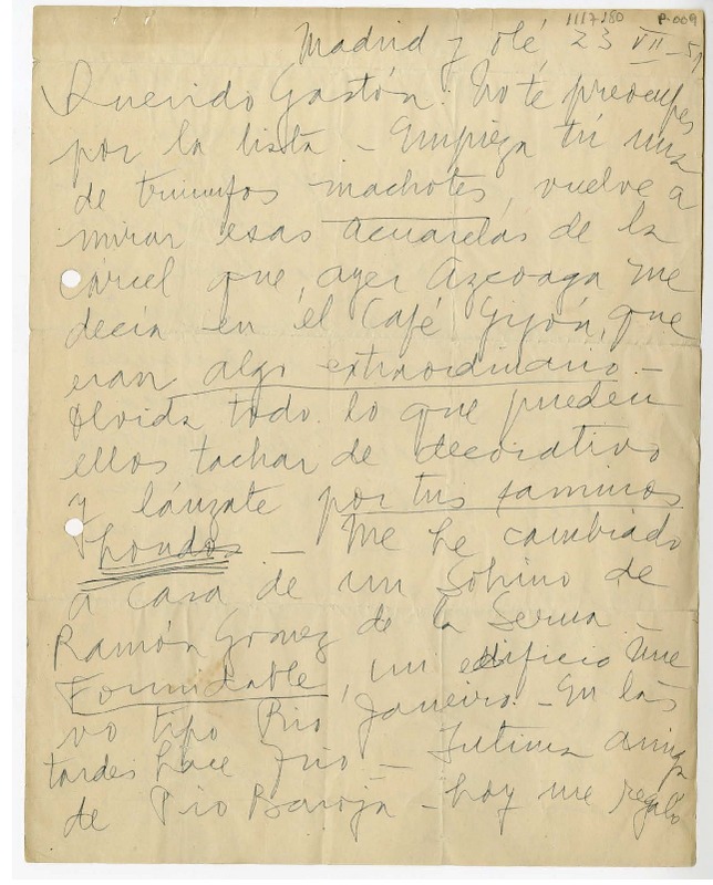[Carta] 1951 julio 23, Madrid, España [a] Gastón [Castelló Bravo] [manuscrito] Stella Corvalán.