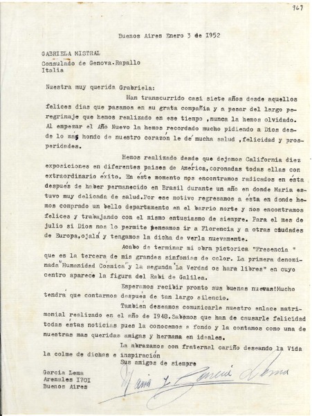 Correspondencia - Mistral, Gabriela - García Lema, Pedro - Díaz de Arcaya, María - Pintores - Manuscritos españoles