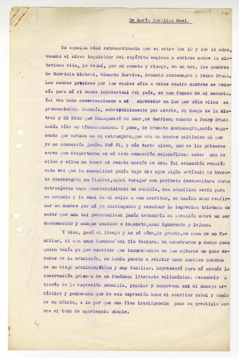 [En aquella edad extraordinaria...] [manuscrito] María Carolina Geel.