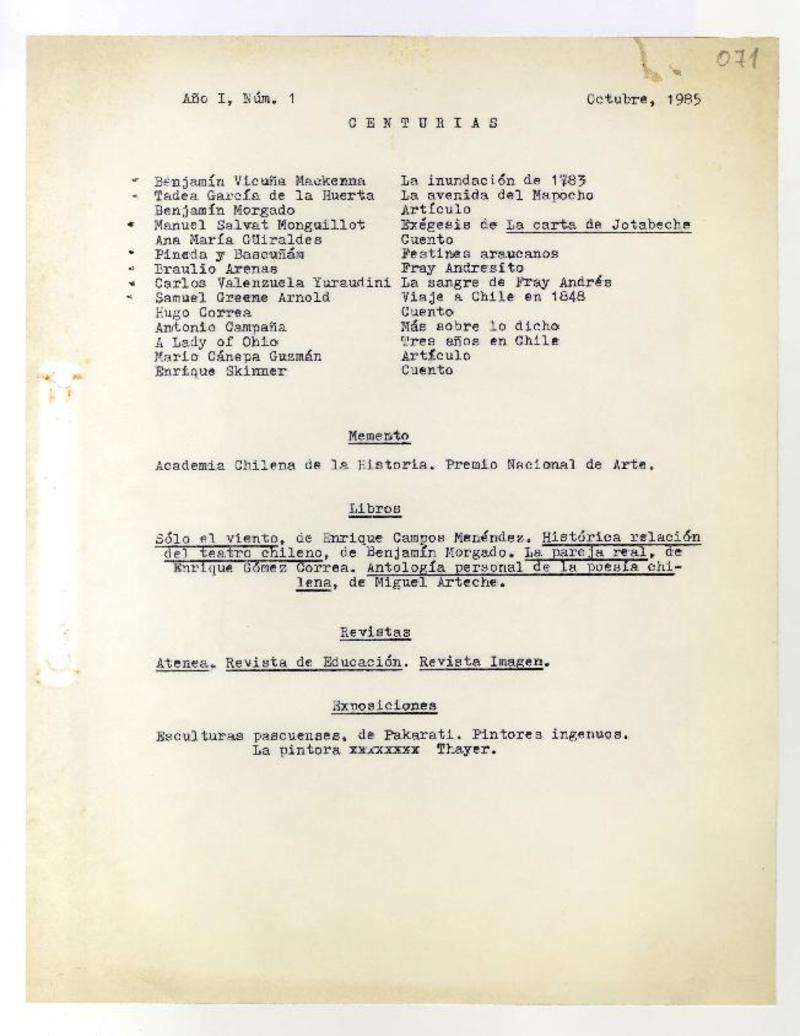 Centurias N°1 [manuscrito]