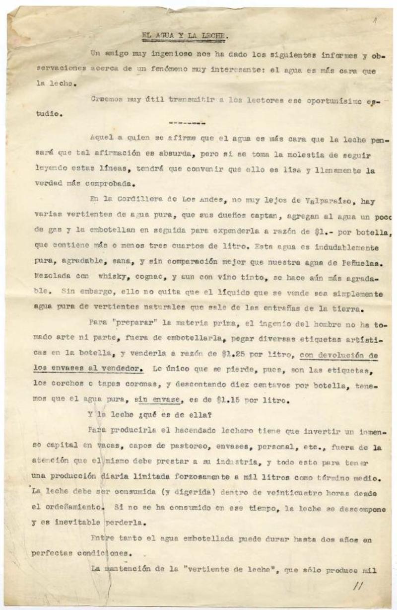El agua y la leche [manuscrito] Egidio Poblete.
