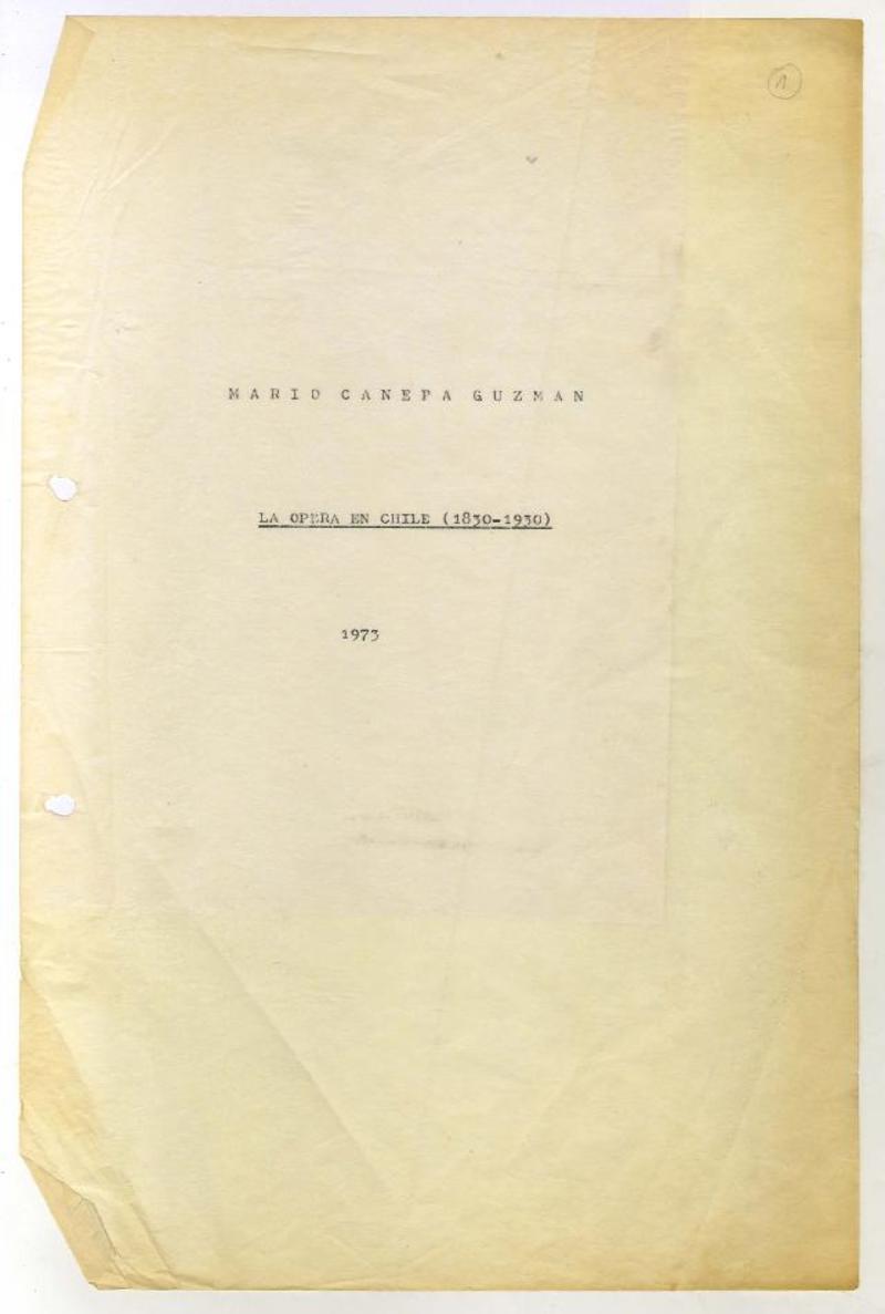 La ópera en Chile : (1830-1930) [manuscrito] Mario Cánepa Guzmán.