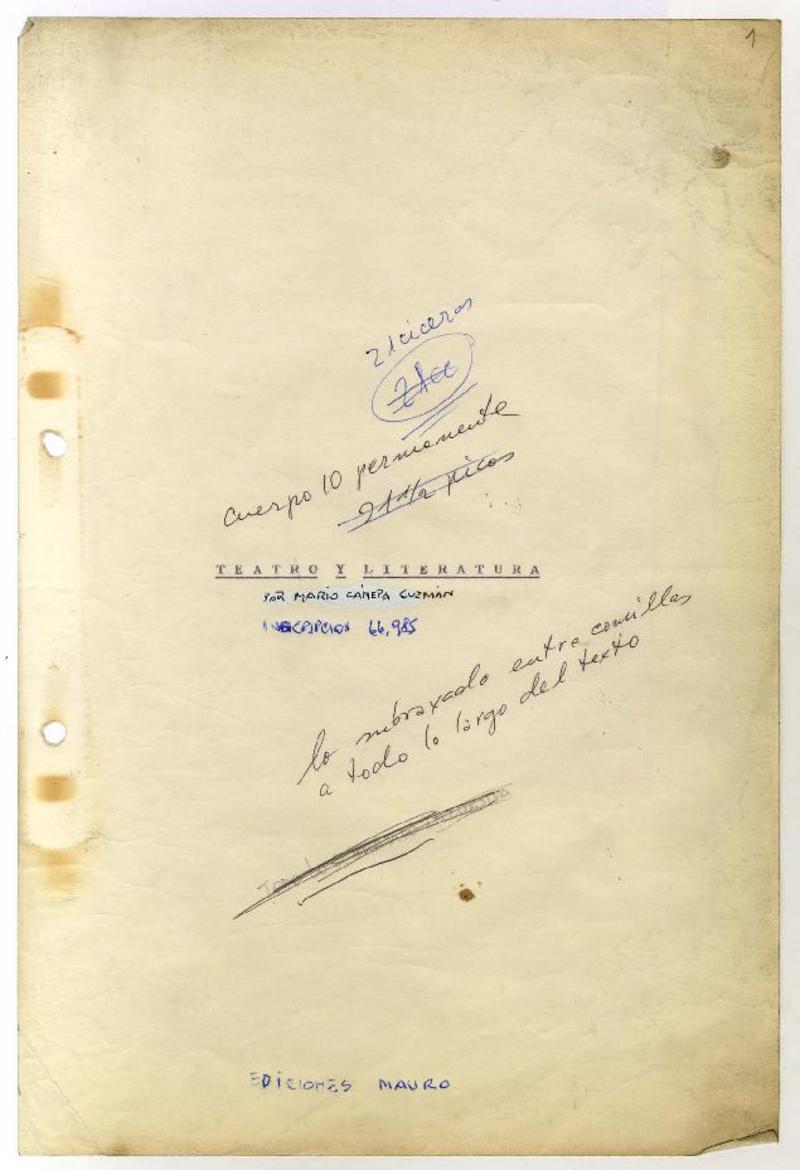 Teatro y literatura [manuscrito] Mario Cánepa.