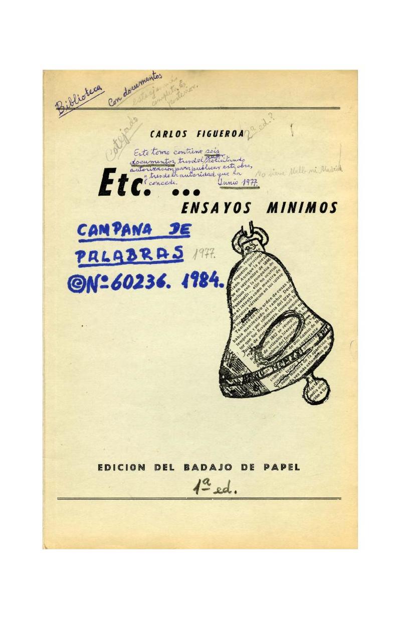 Campana de palabras [manuscrito] Carlos Figueroa.