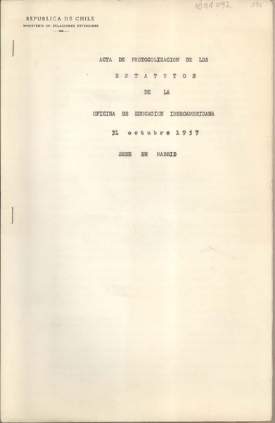 Acta de protocolización de los estatutos de la Oficina de Educación Iberoamericana. [manuscrito]