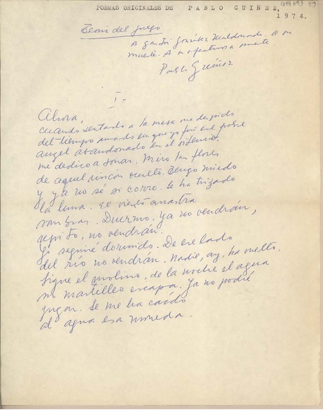 Daza Valenzuela, Pedro - Correspondencia - Autores chilenos - Manuscritos chilenos - Mujica, Juan