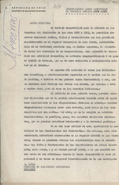 [Oficio N°24859] 1961 septiembre 15, Arequipa, Perú [al] Ministro de Relaciones Exteriores, Santiago, Chile [manuscrito] / Juan Mujica de la Fuente.