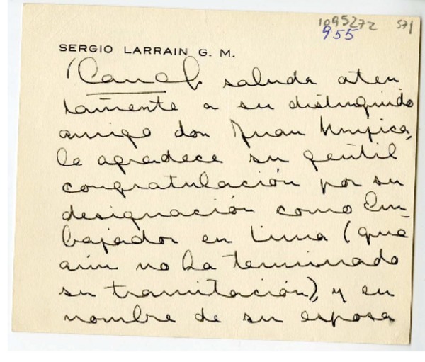 Larraín García Moreno, Sergio - Correspondencia - Autores chilenos - Manuscritos chilenos - Mujica, Juan