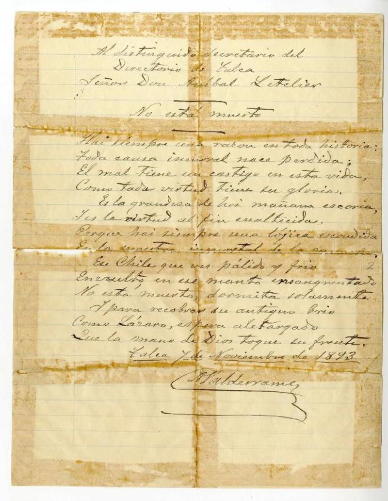 No está muerto [manuscrito] Adolfo Valderrama Sáez de la Peña.