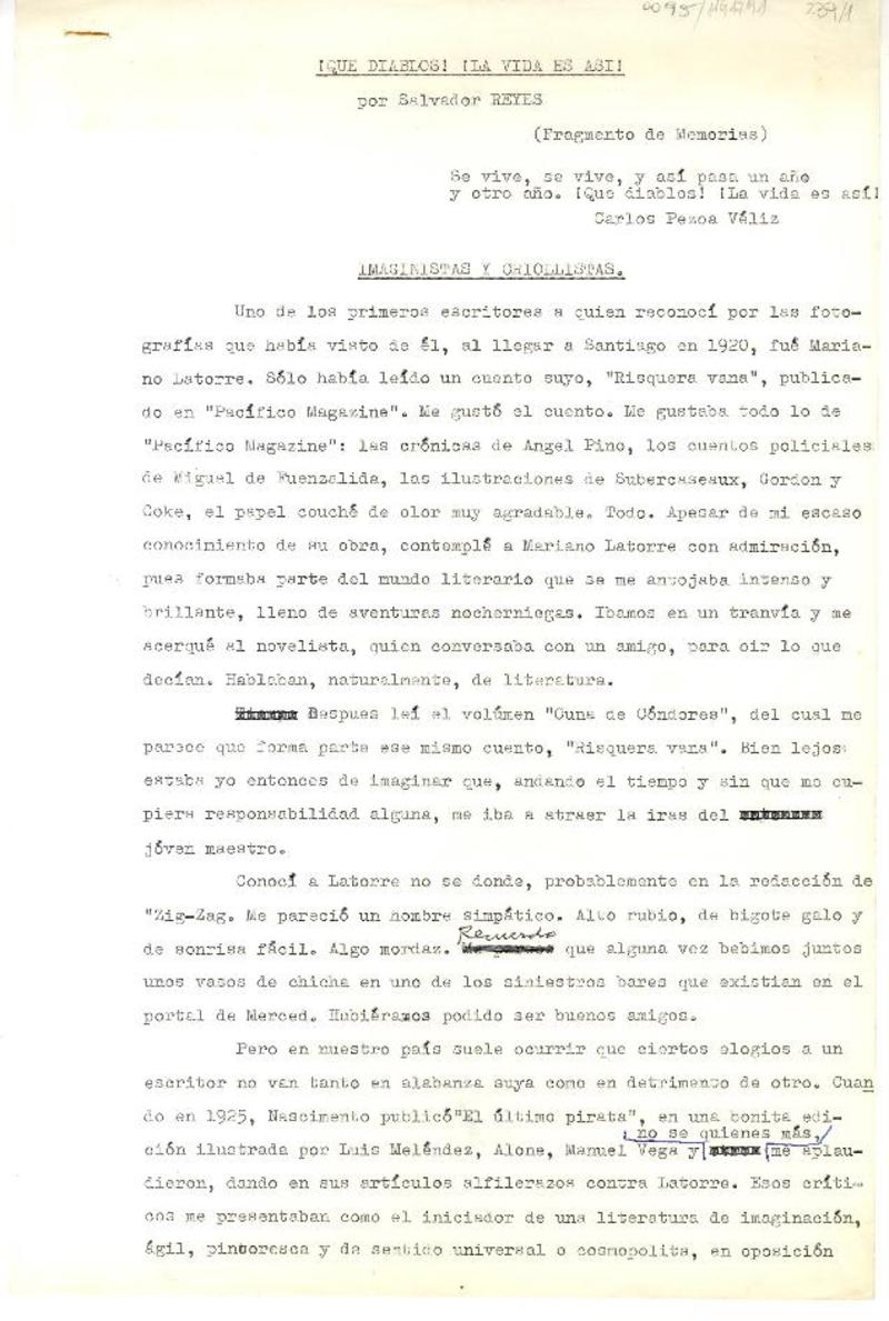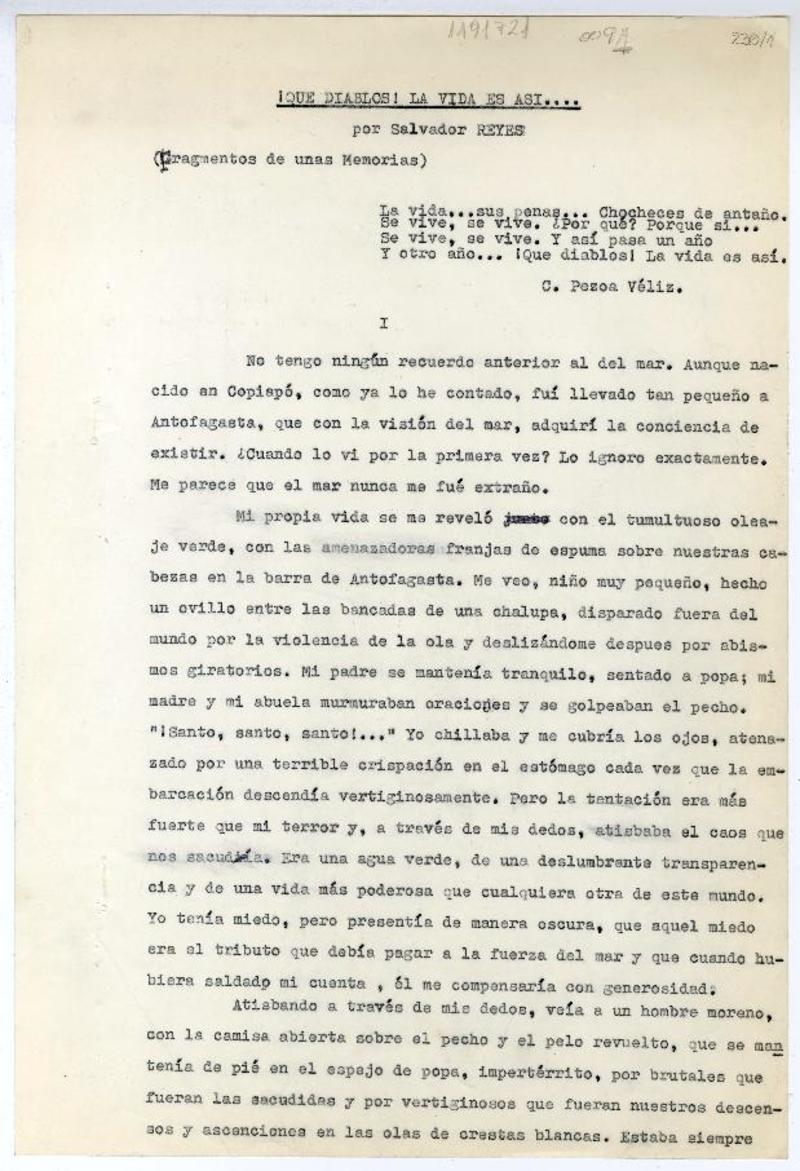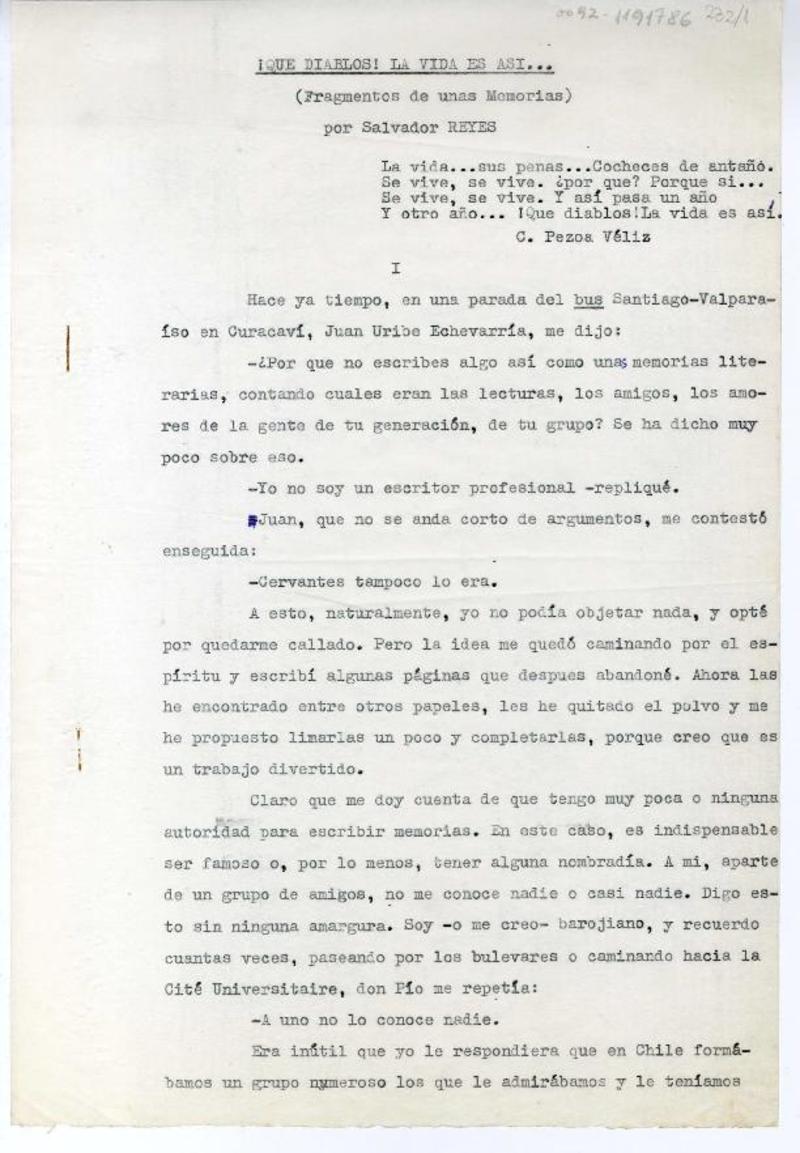 ¡Qué diablos! la vida es así... [manuscrito] Salvador Reyes.