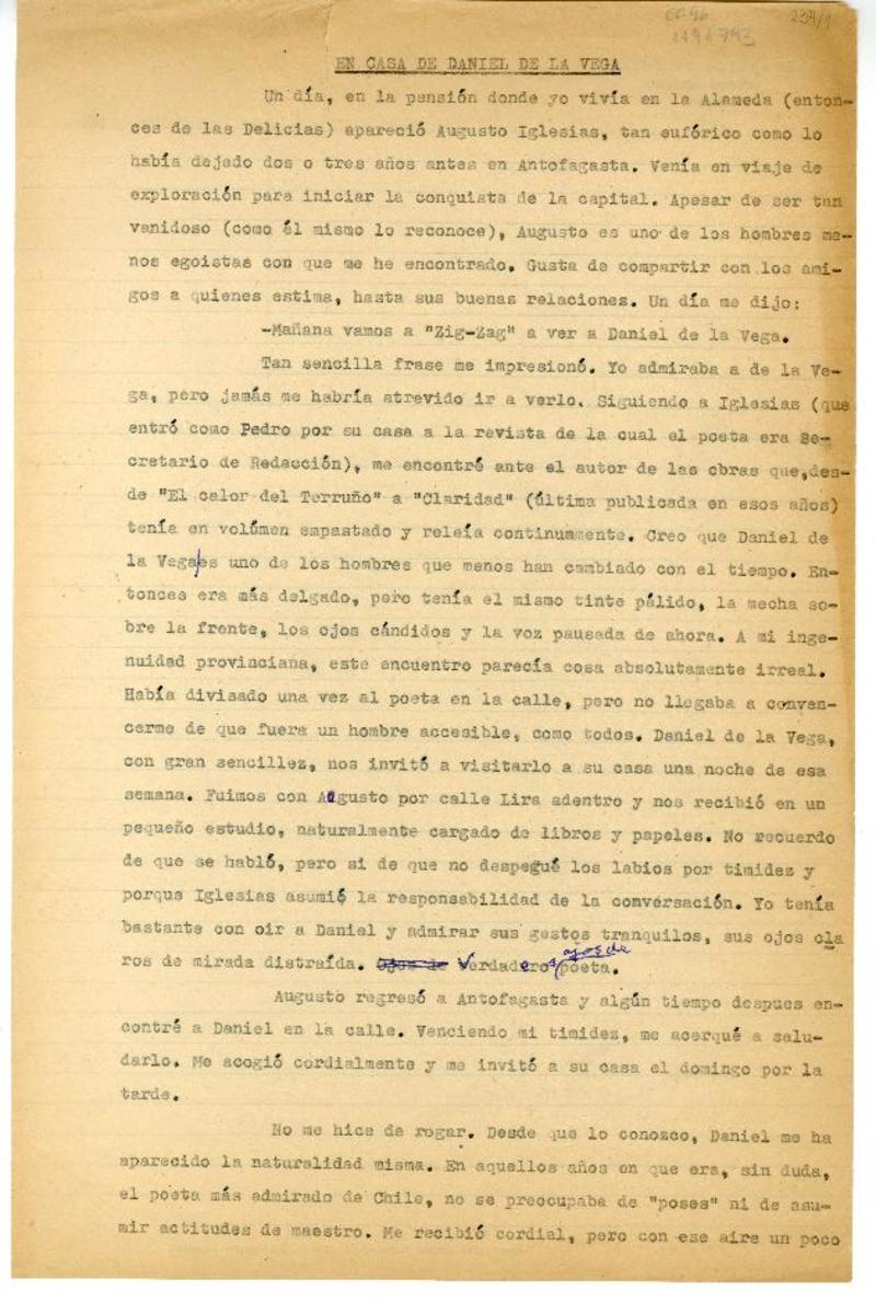 En casa de Daniel de la Vega [manuscrito] Salvador Reyes.