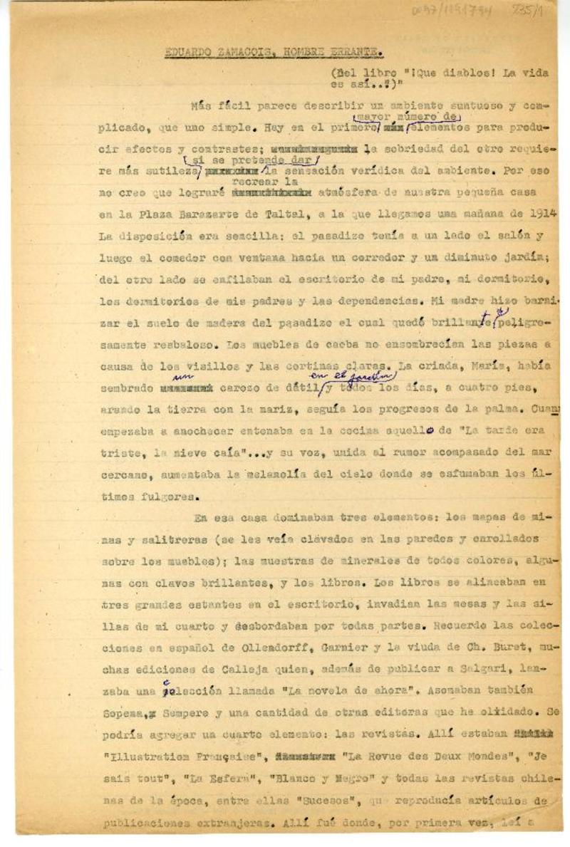 Eduardo Zamacois, hombre errante [manuscrito] Salvador Reyes.
