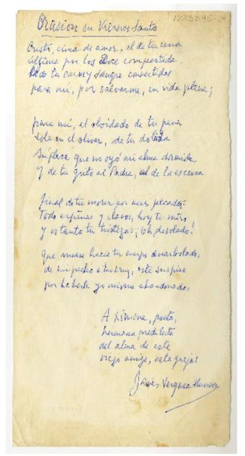Oración en viernes santo [manuscrito] Javier Vergara.