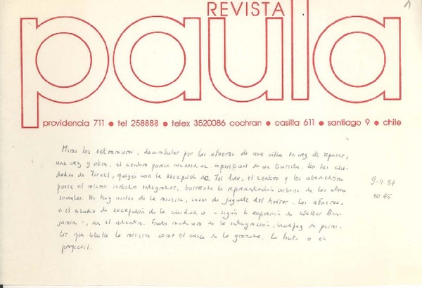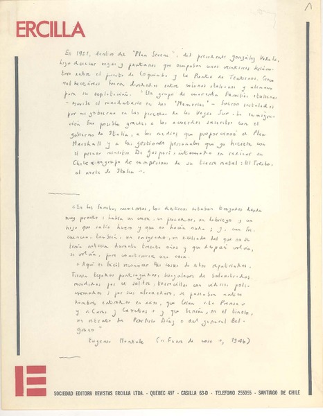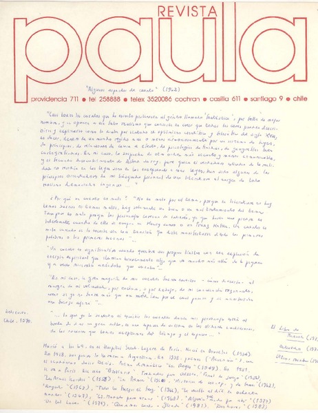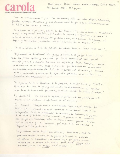 Notas - Manuscritos chilenos - Vargas Llosa, Mario