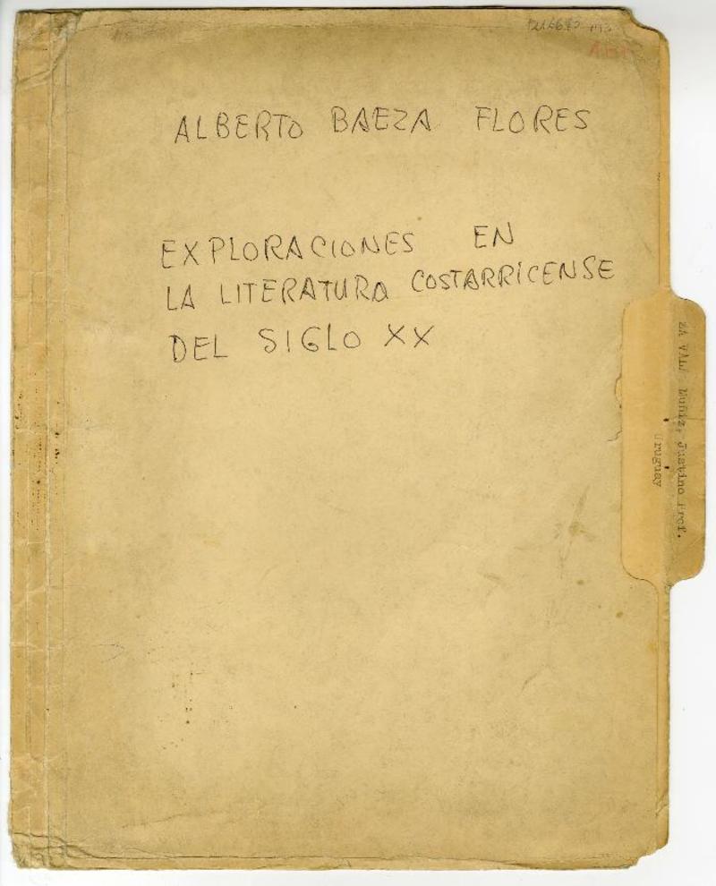 Exploraciones en la literatura costarricense del siglo XX [manuscrito] Alberto Baeza Flores.