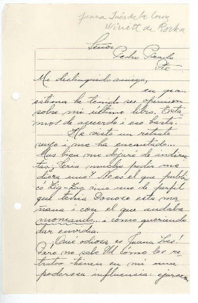 [Carta] 1915 dic. 23, Santiago, Chile [a] Pedro Prado [manuscrito] Winétt de Rokha [Juana Inés de la Cruz].
