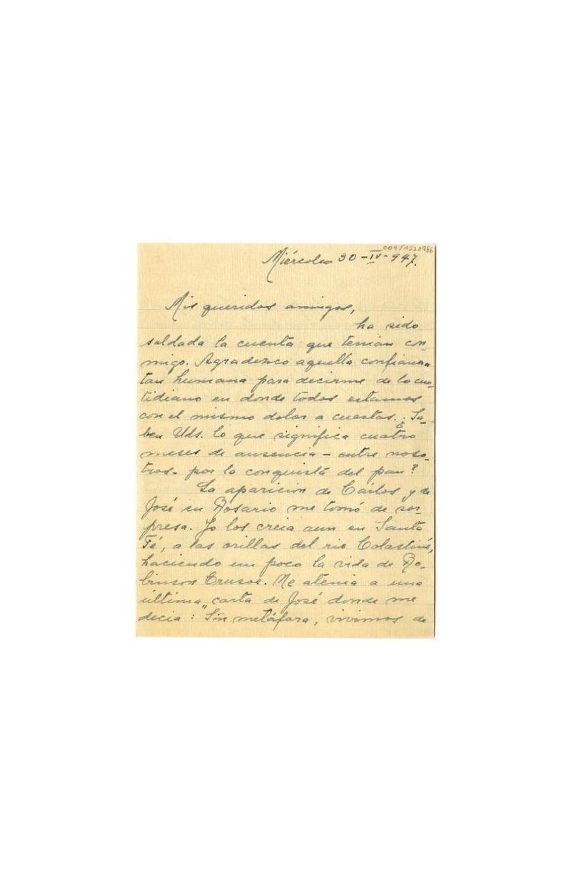 Rosario, Argentina [a] Virginia Picot, Ricardo Montes i Bradley Carta, 1947 abril 30, [manuscrito] Winnét de Rokha.