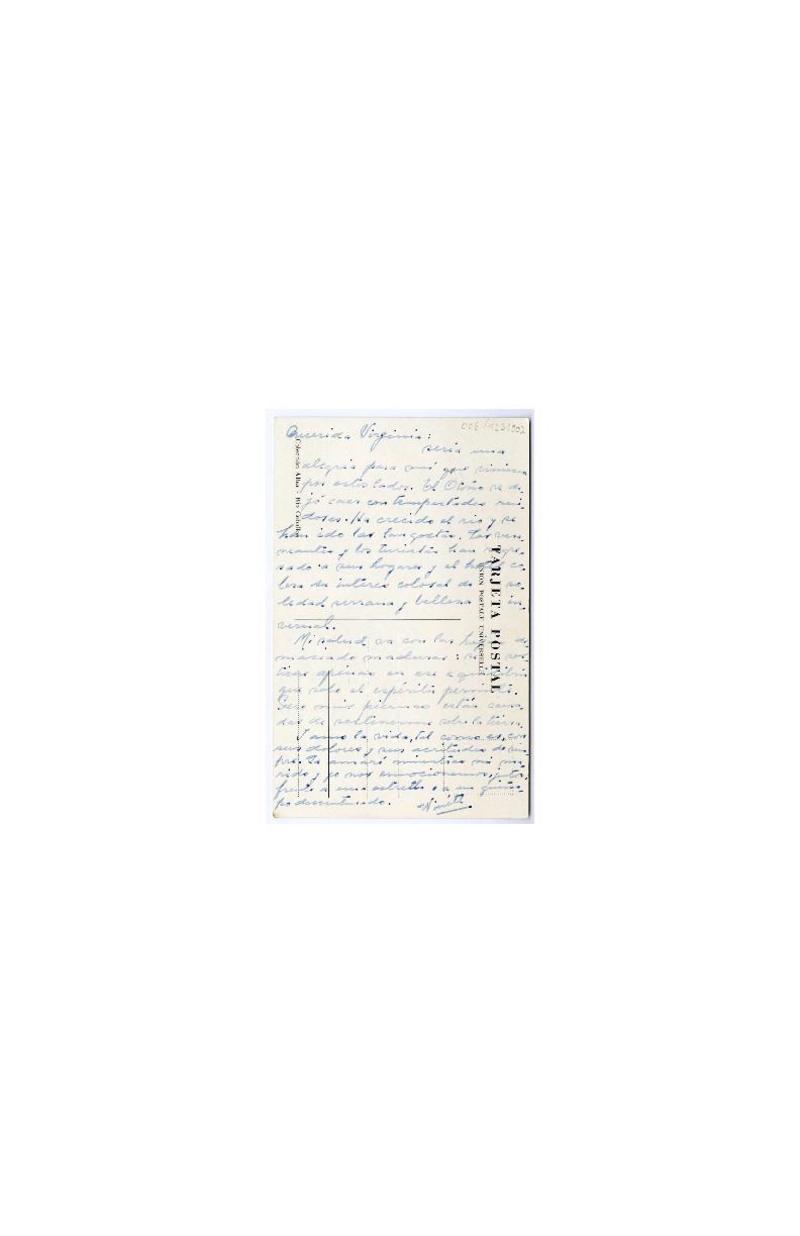 Río Ceballos, Argentina [a] Virginia Picot Tarjeta postal, Cerca de 1948, [manuscrito] Winnét de Rokha.