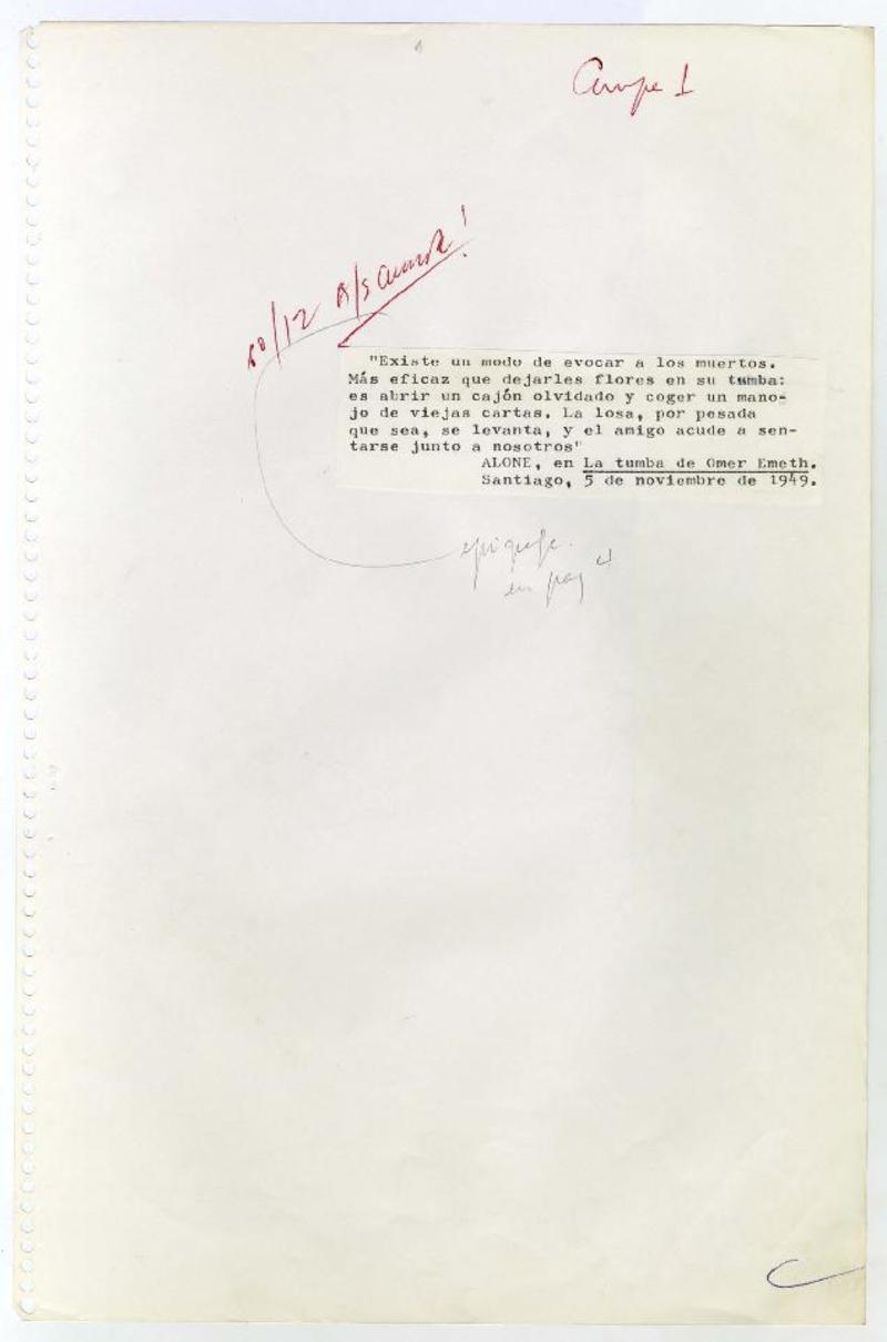 Teatro y literatura [manuscrito] Mario Cánepa.