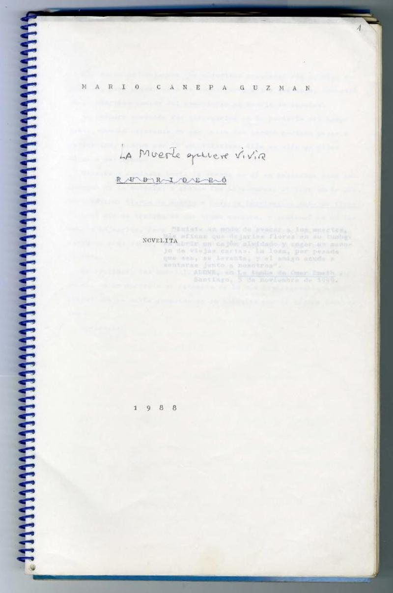 La muerte quiere vivir [manuscrito] Mario Cánepa Guzmán.