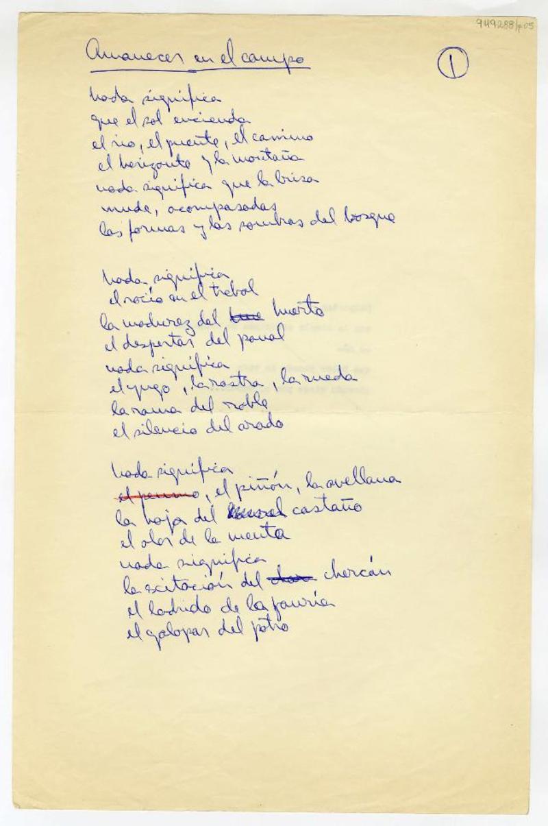Amanecer en el campo [manuscrito] Boris Tocigl Sega.