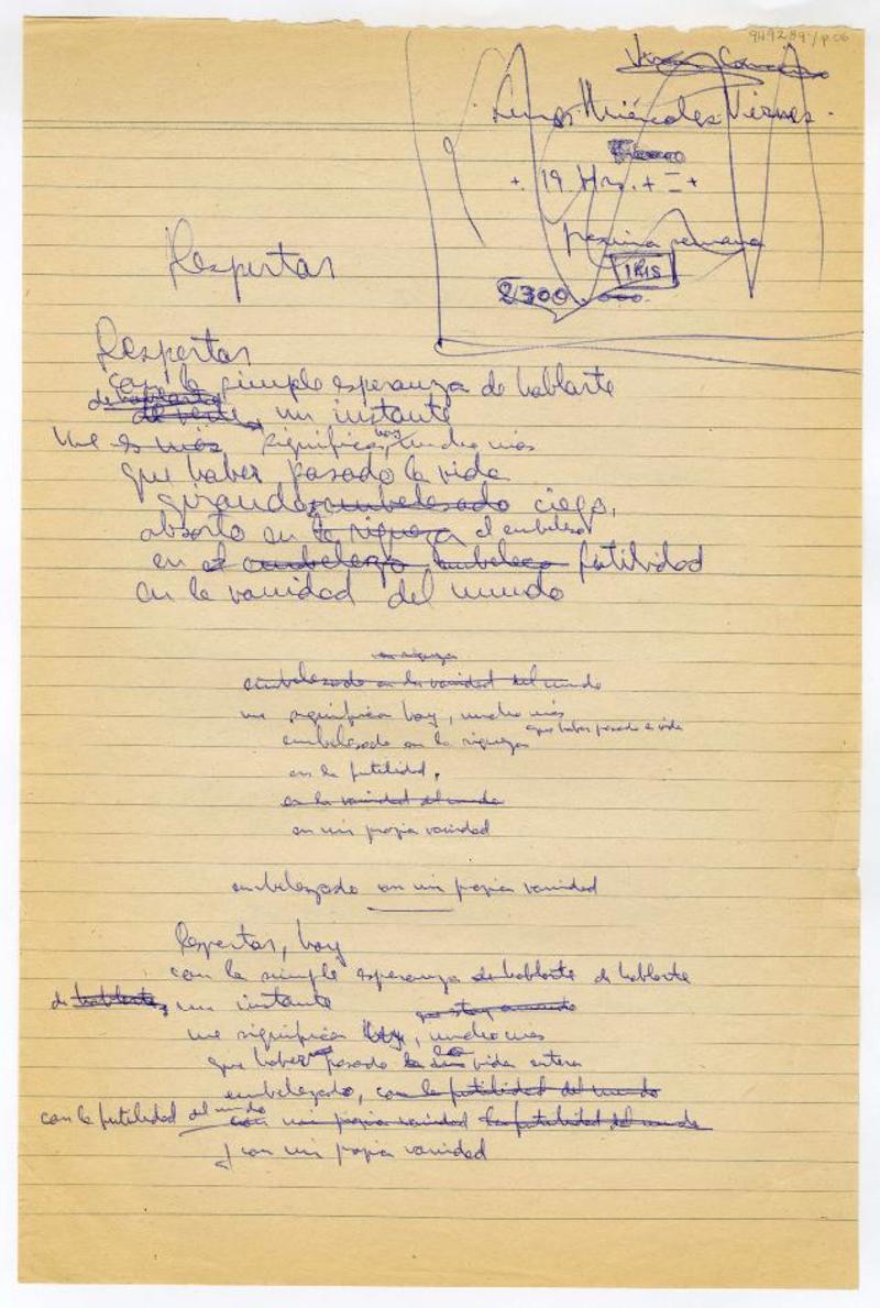 [Huye amor mío...] [manuscrito] Boris Tocigl Sega.