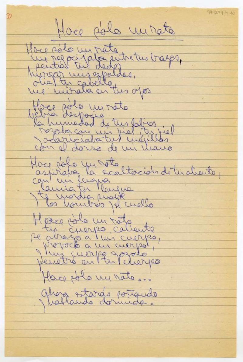 Hace sólo un rato [manuscrito] Boris Tocigl Sega.
