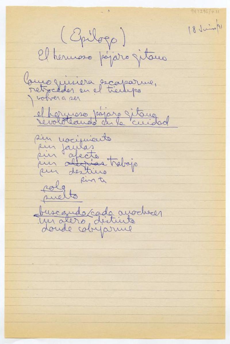 El hermoso pájaro gitano [manuscrito] Boris Tocigl Sega.