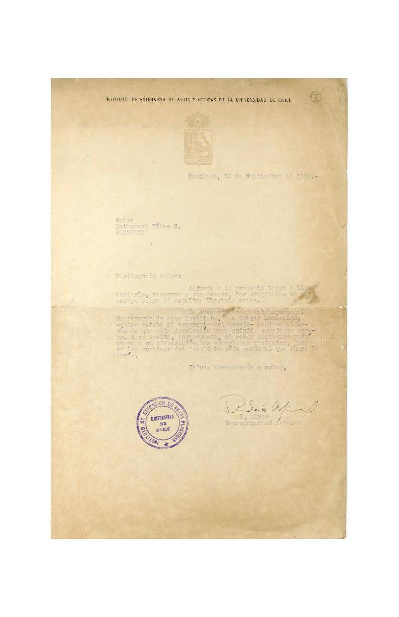 El escultor Virginio Arias [manuscrito] Nathanael Yáñez Silva.